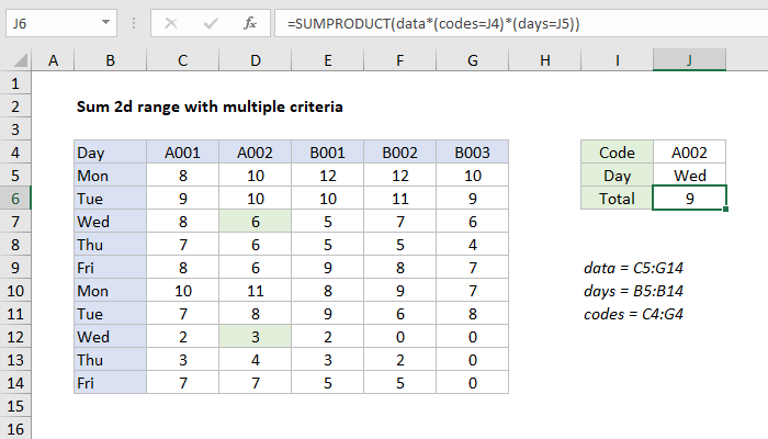 Excel Formula Sum Matching Columns And Rows Exceljet
